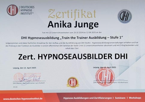 - Zertifizierte Hypnoseausbilderin (DHI)